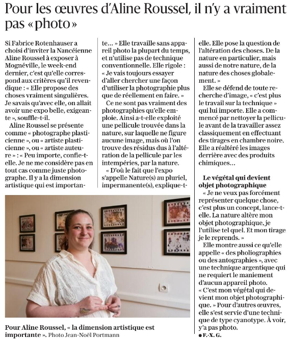 - 6 – 7 Avril 2024 : Exposition solo, « Nature(s) Impermanente(s)», La Fourmilière, Mognéville (55)